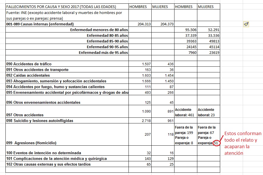 ¿Que los hombres mueren más por todas y cada una las causas de muerte excepto vejez? Nada. (datos del INE):